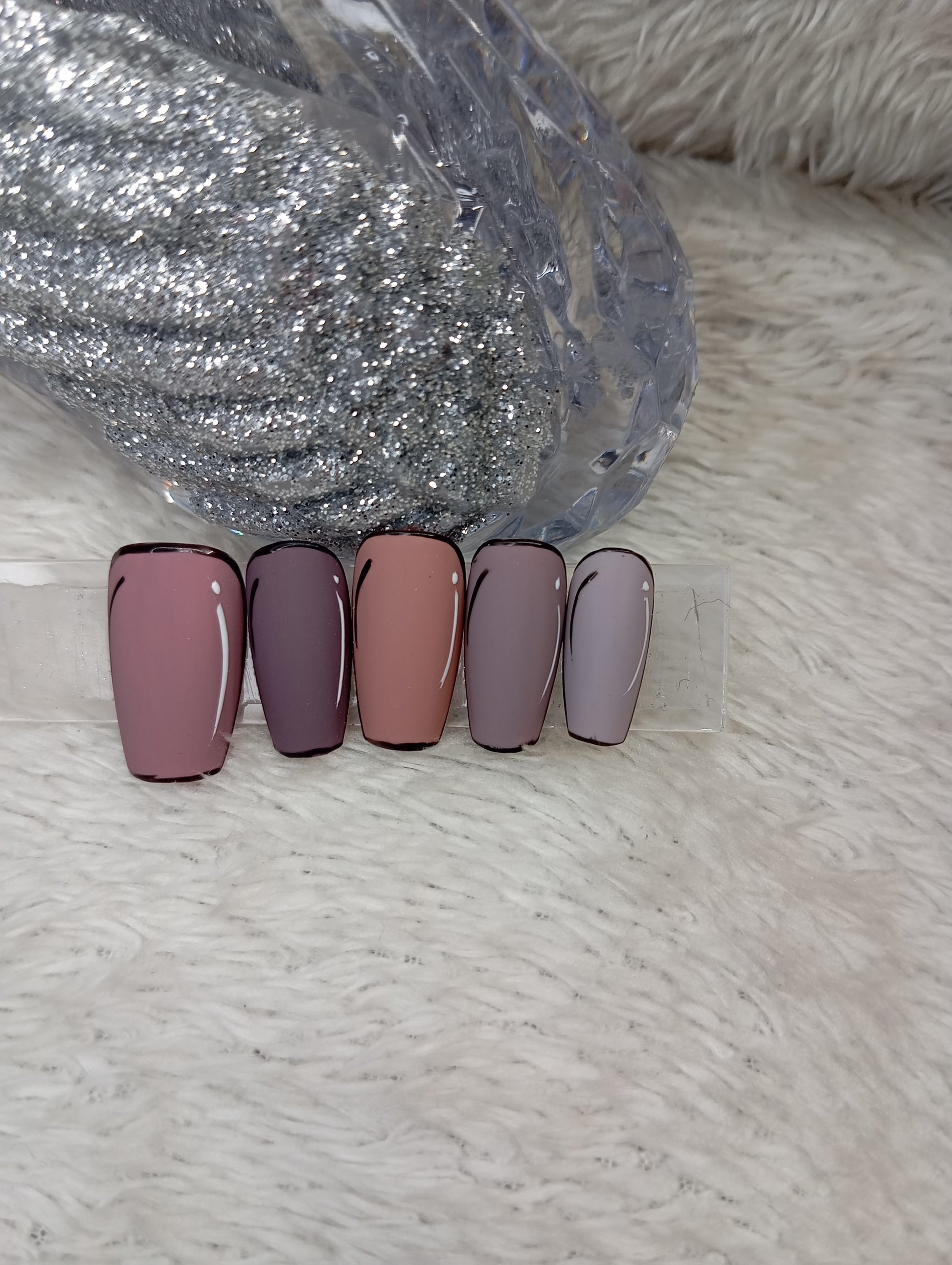 Un set Ă©lĂ©gant et minimaliste dĂ©clinĂ© dans un dĂ©gradĂ© marron â taupe â gris froid, parfaitement Ă©quilibrĂ©. Chaque capsule possĂšde un liserĂ© blanc courbĂ© qui apporte une touche moderne et raffinĂ©e.