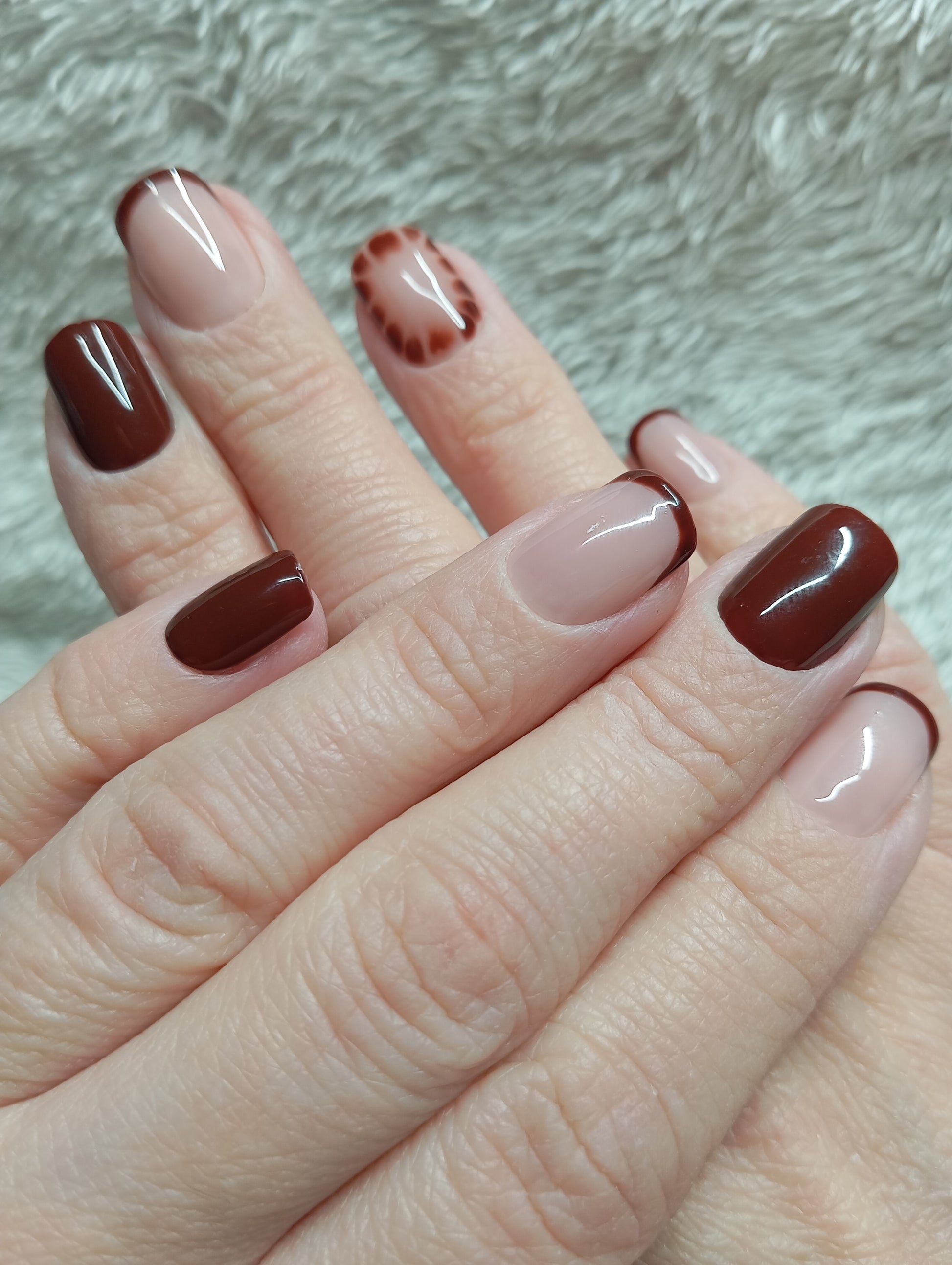 🖌️ Technique : French manucure peinte main + nuances chocolat