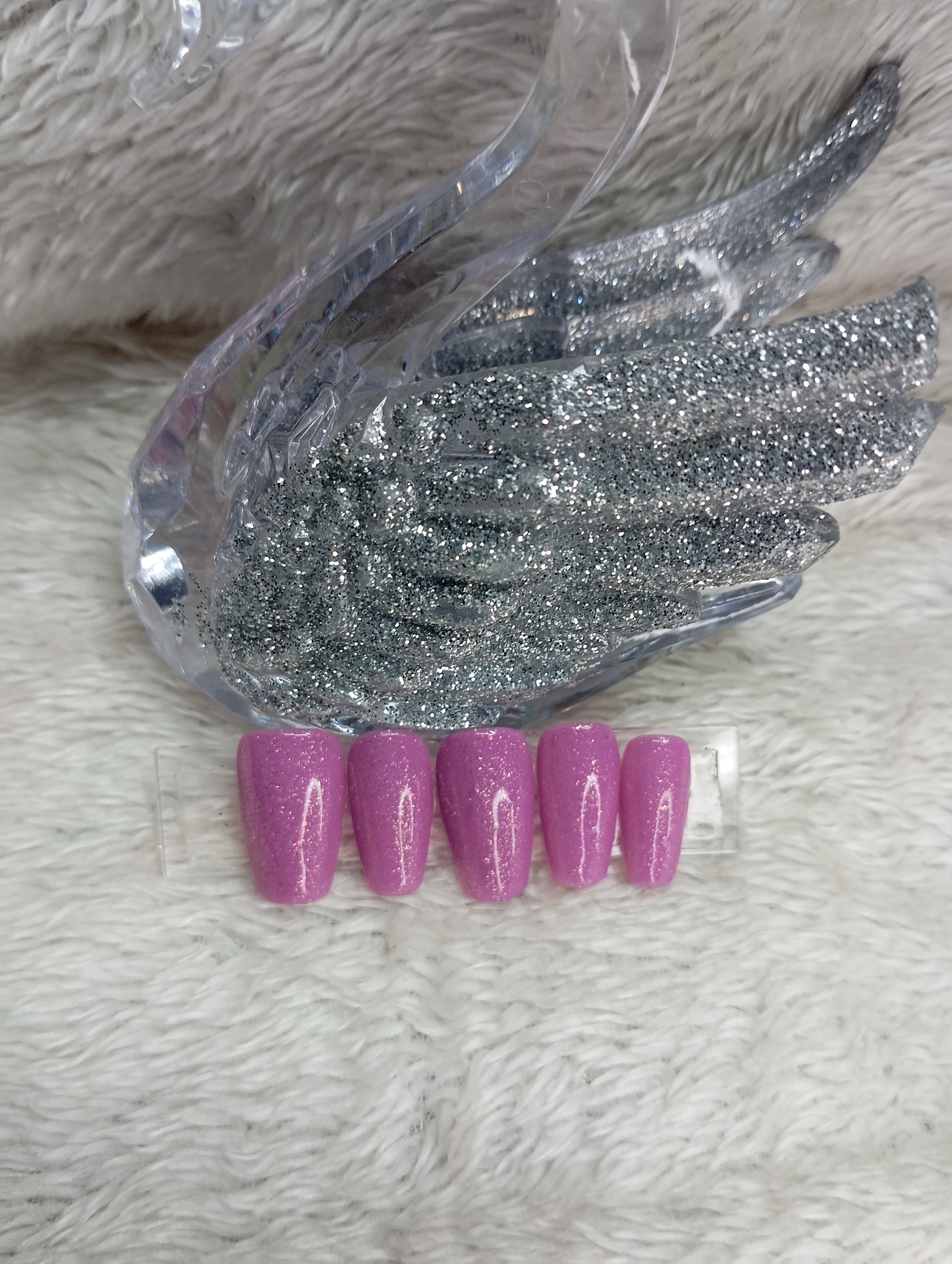 Design: Couleur Lila (lavande) uni, imprégnée de micro paillettes holographiques.